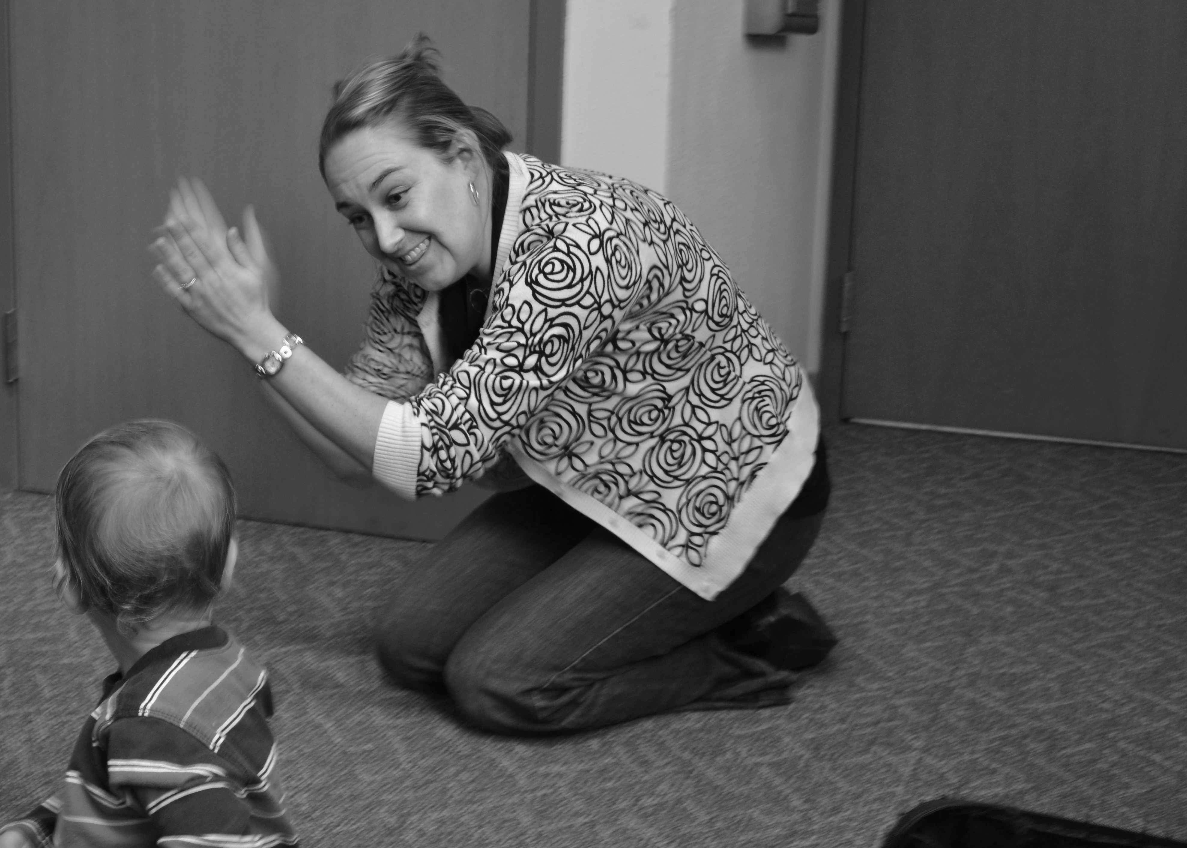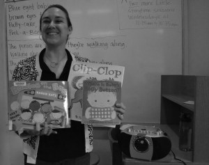 Bethany Hoglund, 31, leads a dance during the first session of Little Storytime on Tuesday, Oct. 18 at the Bellingham Public Library. She is the head of children’s services at the library and leads story time two to three times a day three days a week starting at 10:05 a.m. About 30 children ages 3 and under, along with their parents, attended. Hoglund has worked at the library since 1996, this is her first year leading the children’s department. She said she enjoys working with families and their children. “I like breaking the mold of what a library should be,” she said.
